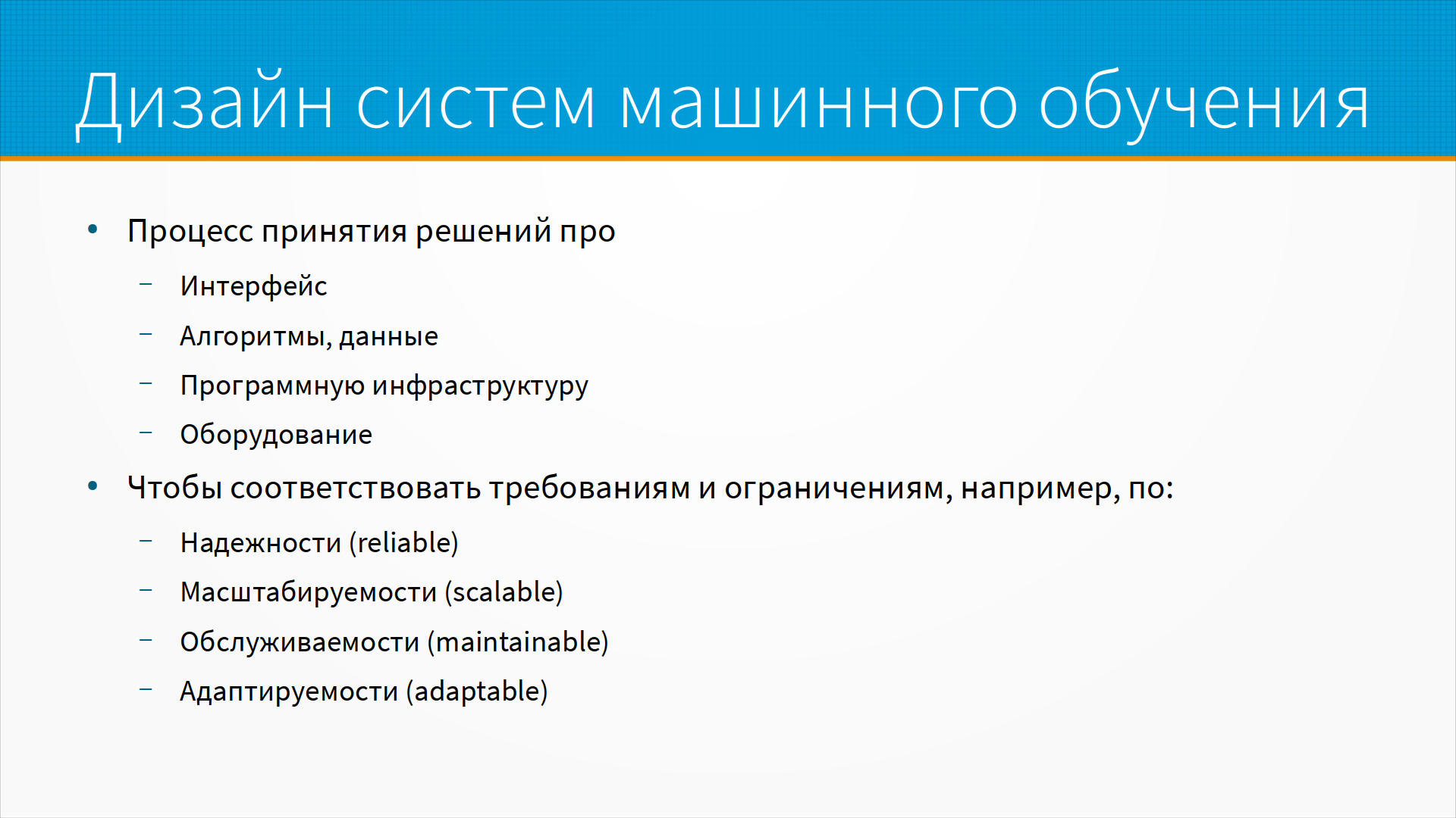 Привет! Меня зовут Дмитрий Колодезев, и это первая лекция нашего курса про дизайн систем машинного обучения.