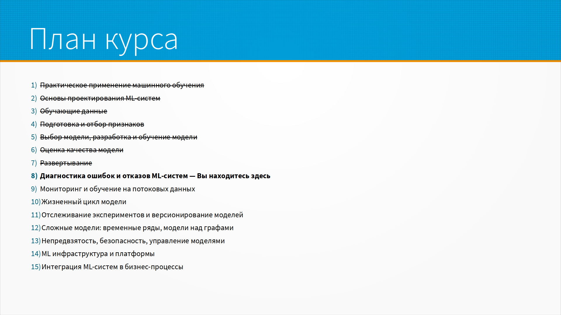 Восьмая лекция открытого курса "Дизайн систем машинного обучения", "Диагностика ошибок и отказов".