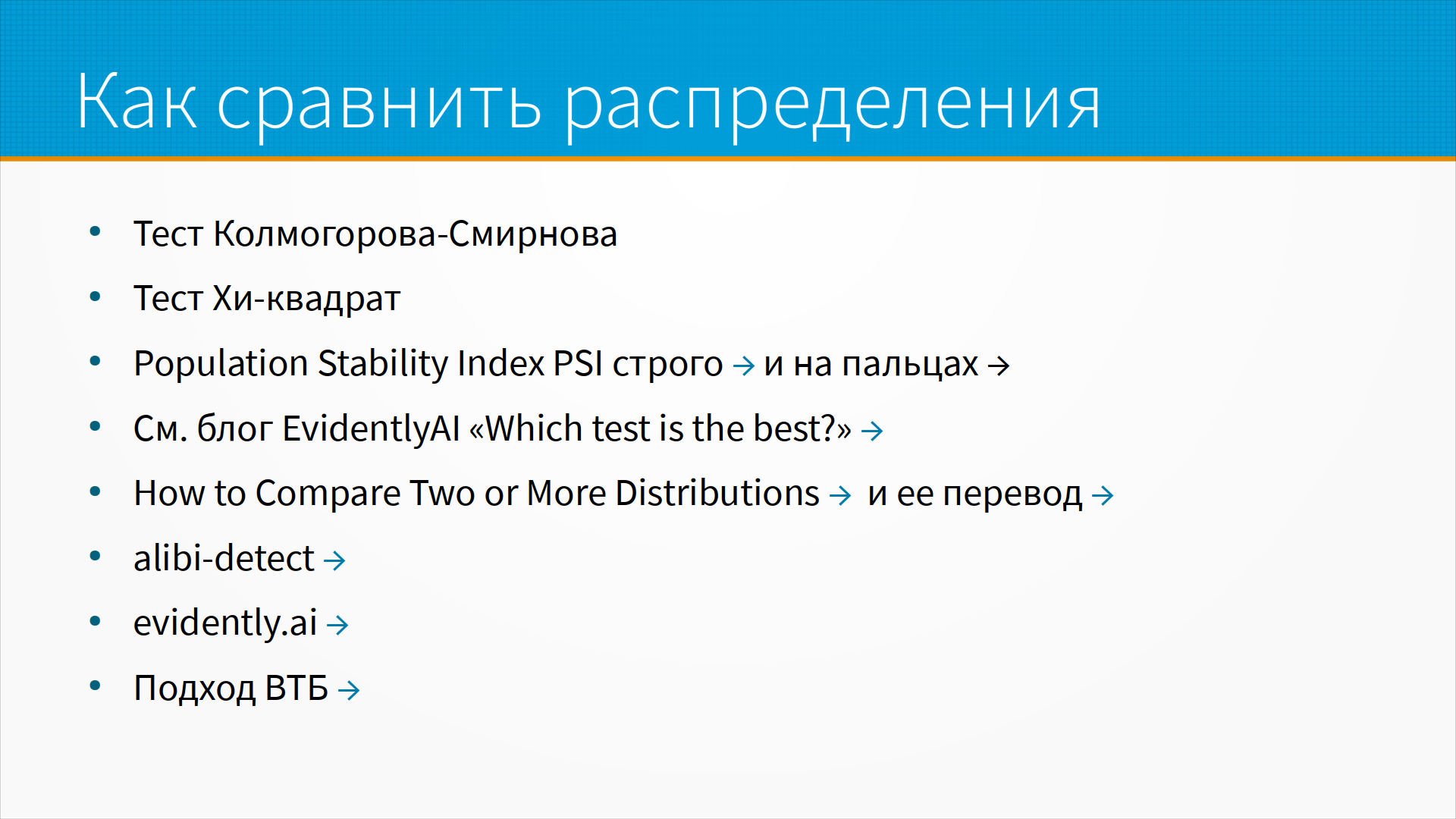 У EvidentlyAI есть много инструментов для мониторинга распределений. Собственно говоря, EvidentlyAI – это один большой инструмент для мониторинга сдвига распределений.