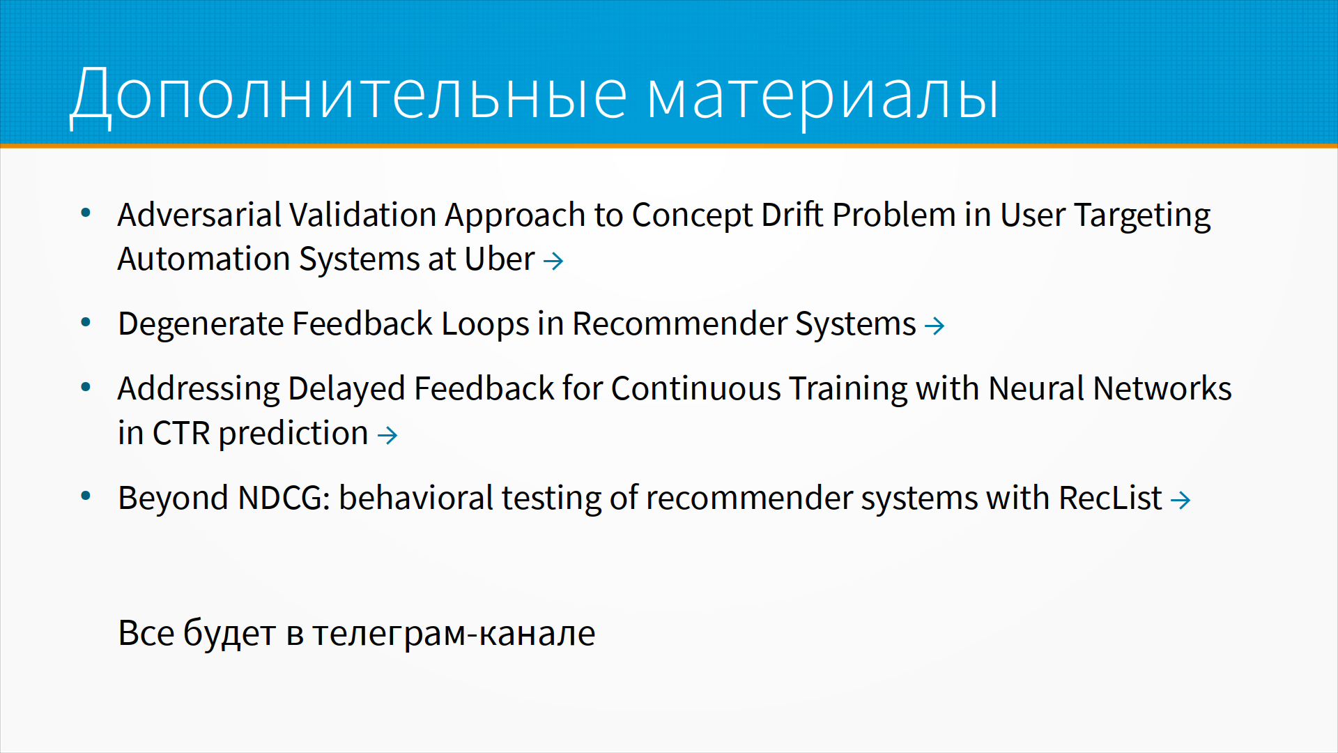 Мы можем расширять рекомендации. Например, добавлять не ML рекомендации. У Яндекса это то, что они называли колдунщиками, или, например, там Spectre была, по-моему, такая технология, когда часть выдачи образуется экспертной системой, напрямую не связанной с вашим запросом, а скорее отслеживающей то, как вы себя ведете - какие-то новые поступления, рекомендации экспертов в этой категории.