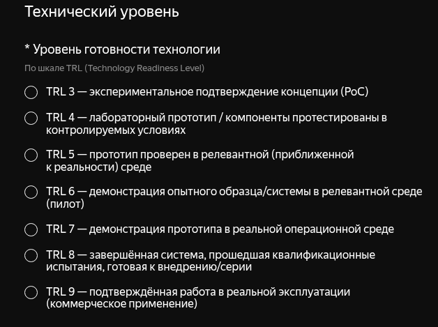 Например, Yandex AI Startup Lab берет проекты с уровня TLR3.