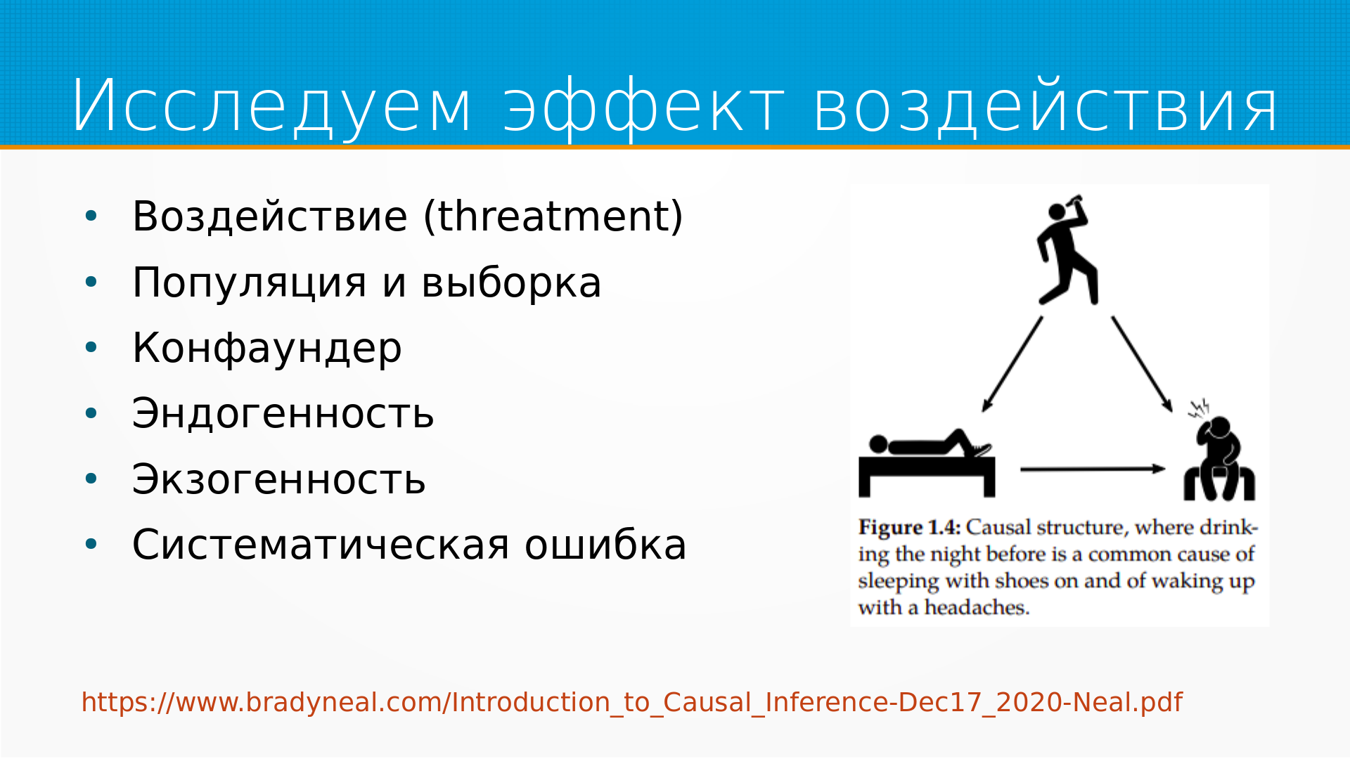 - Causal Inference for The Brave and True переведена на русский как Причинно-следственный анализ для смелых и честных.
