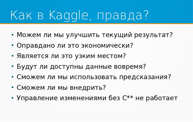 Является ли это узким местом? В принципе, в бизнесе то, что вы хотите ему оптимизировать, проэмэлить, может вообще не являться узким местом. Мы можем делать удивительные модели, удивительные предсказания, но конкретно у этого бизнеса, например, ему это неинтересно.