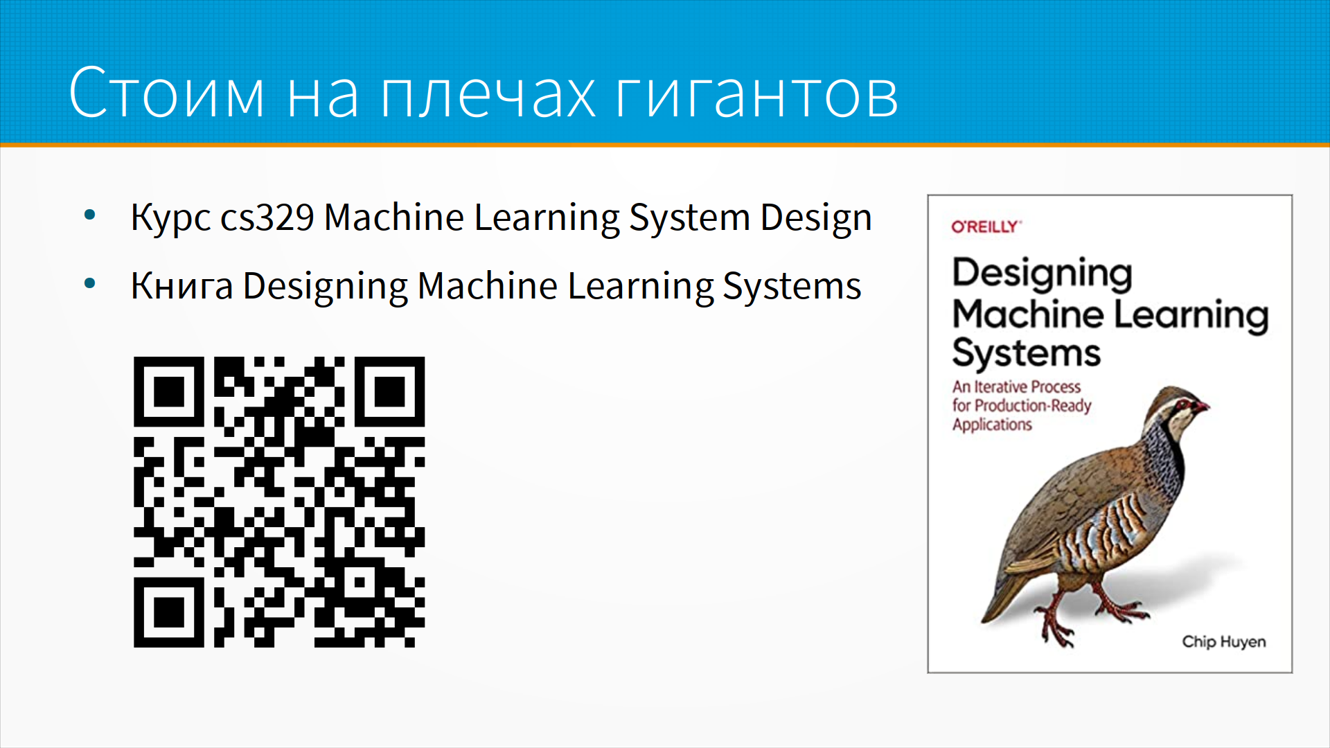 Chip Huyen читала в Стэнфорде. По материалам курса она издала книгу, и в книге написано все, о чем я хочу рассказать.