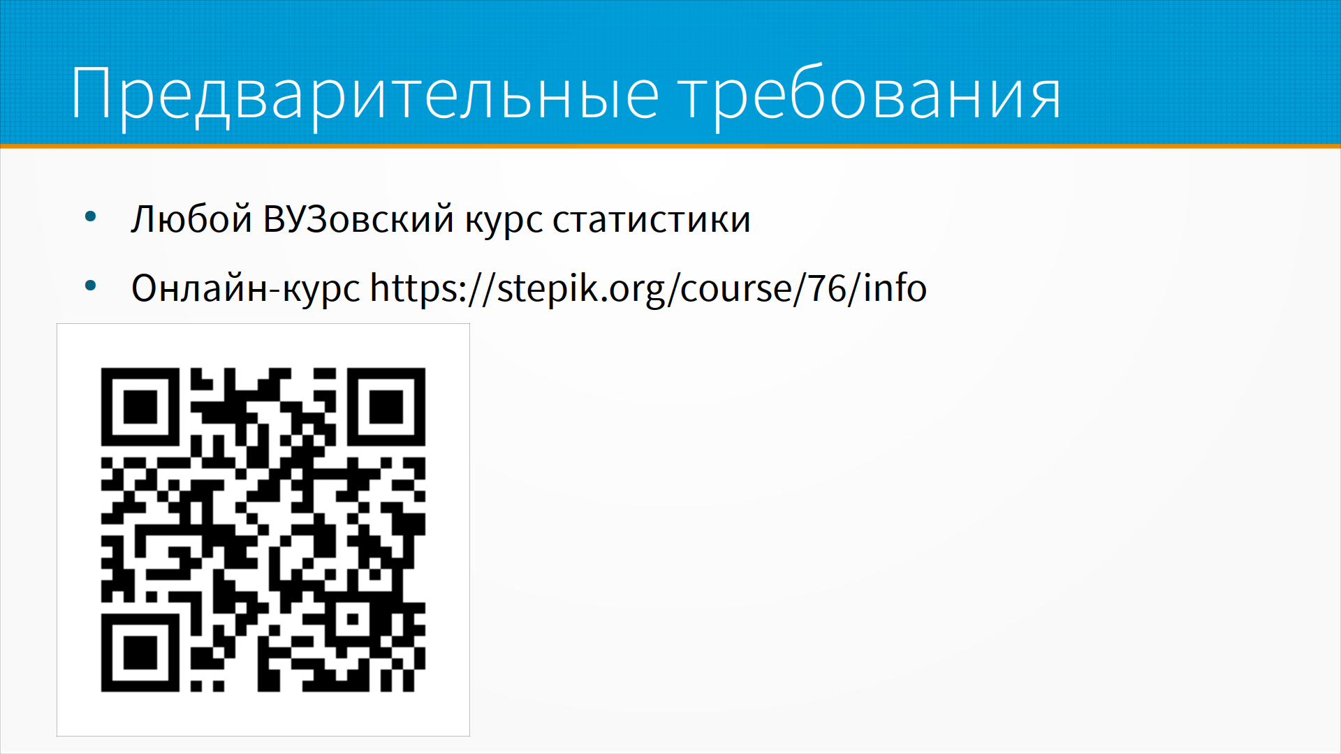 Но кое-что знать все-таки нужно. В первую очередь, хорошо бы знать основы статистики. Хотя бы самые азы. Идеально вузовский курс статистики, но если нет - курса на Степике будет достаточно.