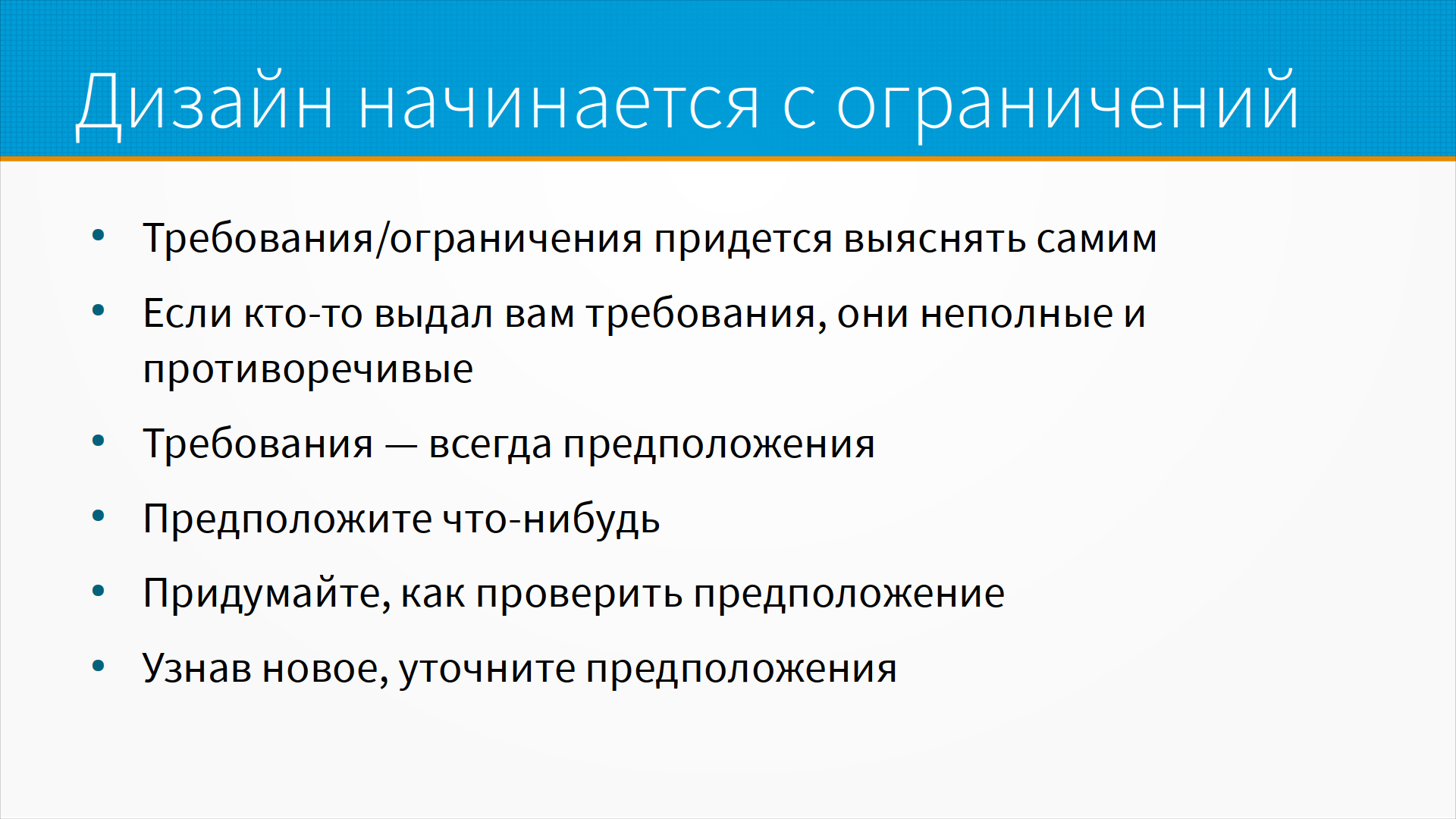 Любой дизайн начинается с ограничений. Если у нас нет ограничений, не о чем и беспокоиться: как бы мы ни сделали, все равно будет хорошо.