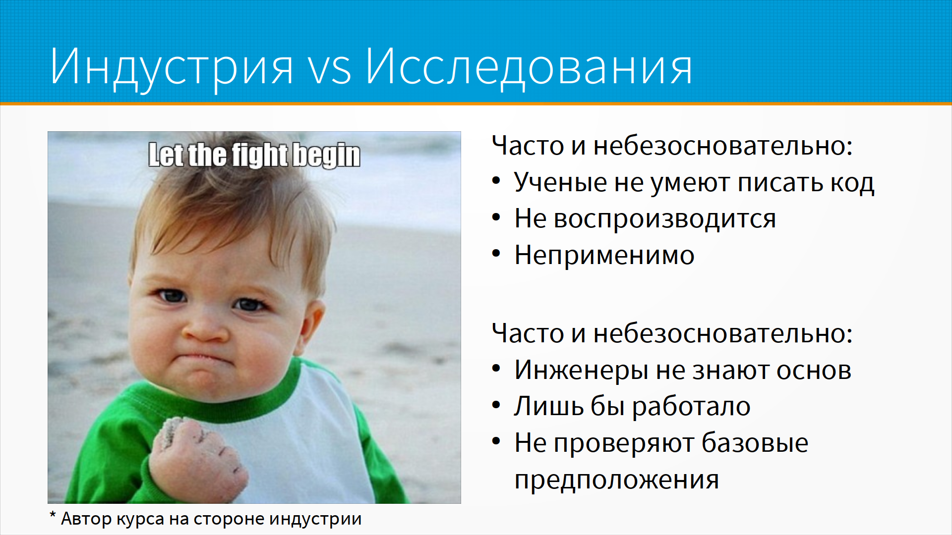 Ученые не умеют писать код, их код ужасен, невоспроизводим и малоприменим в реальных условиях.