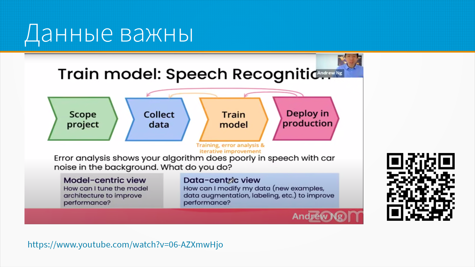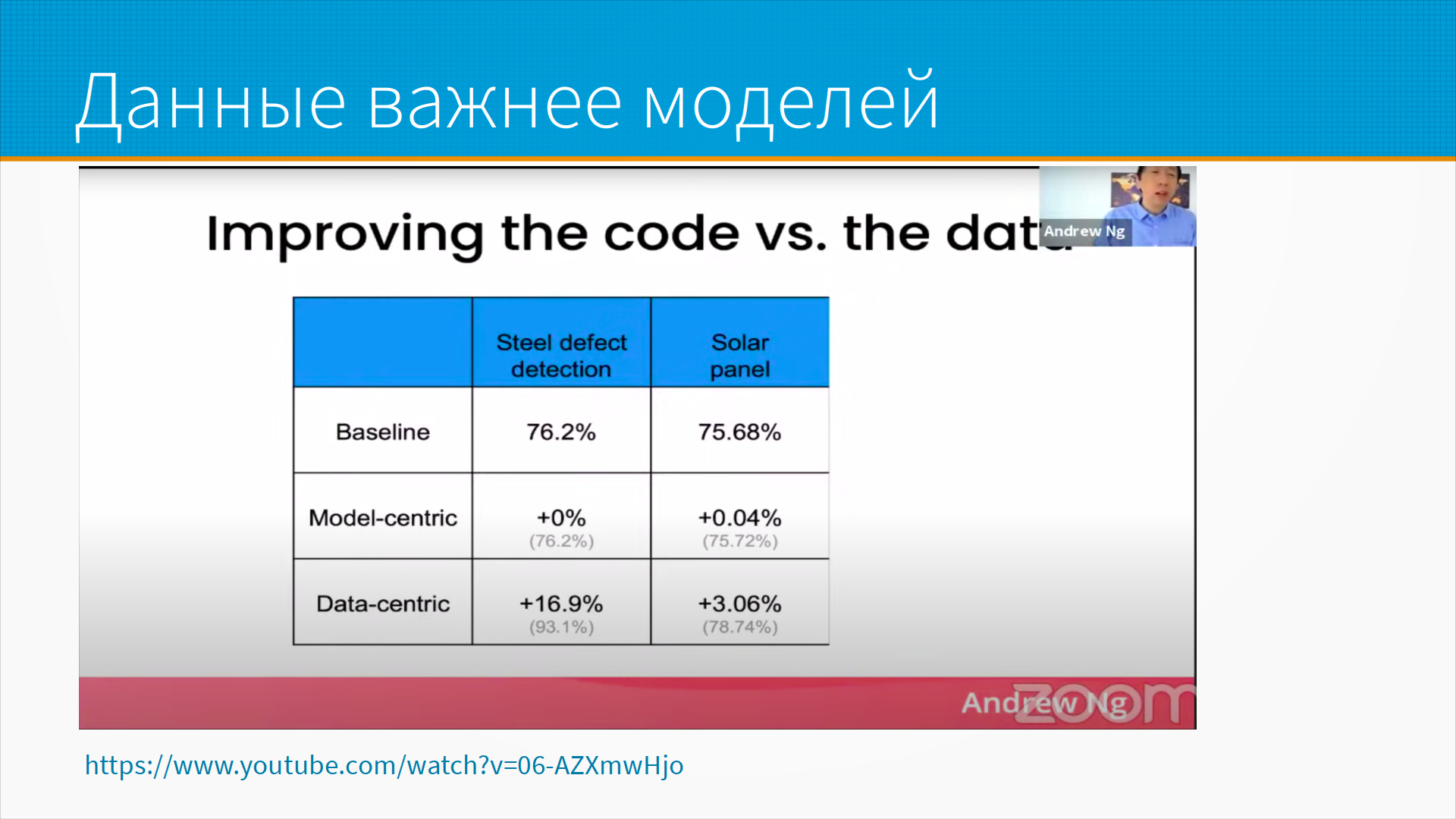 По его опыту, который совпадает с моим, Data-Centric подход обычно продуктивнее.