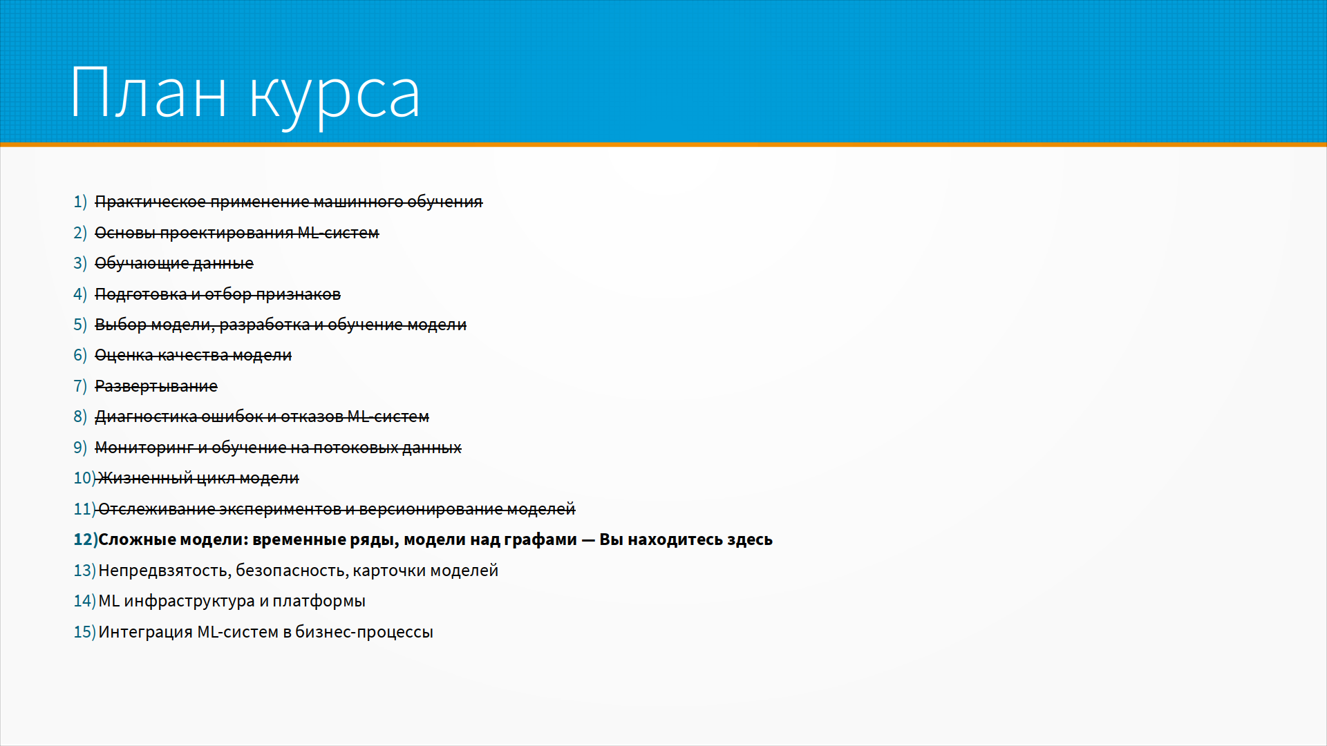 Добрый день, меня зовут Дмитрий Колодезев и это 12 лекция курса про дизайн систем машинного обучения — "Временные ряды и графы".