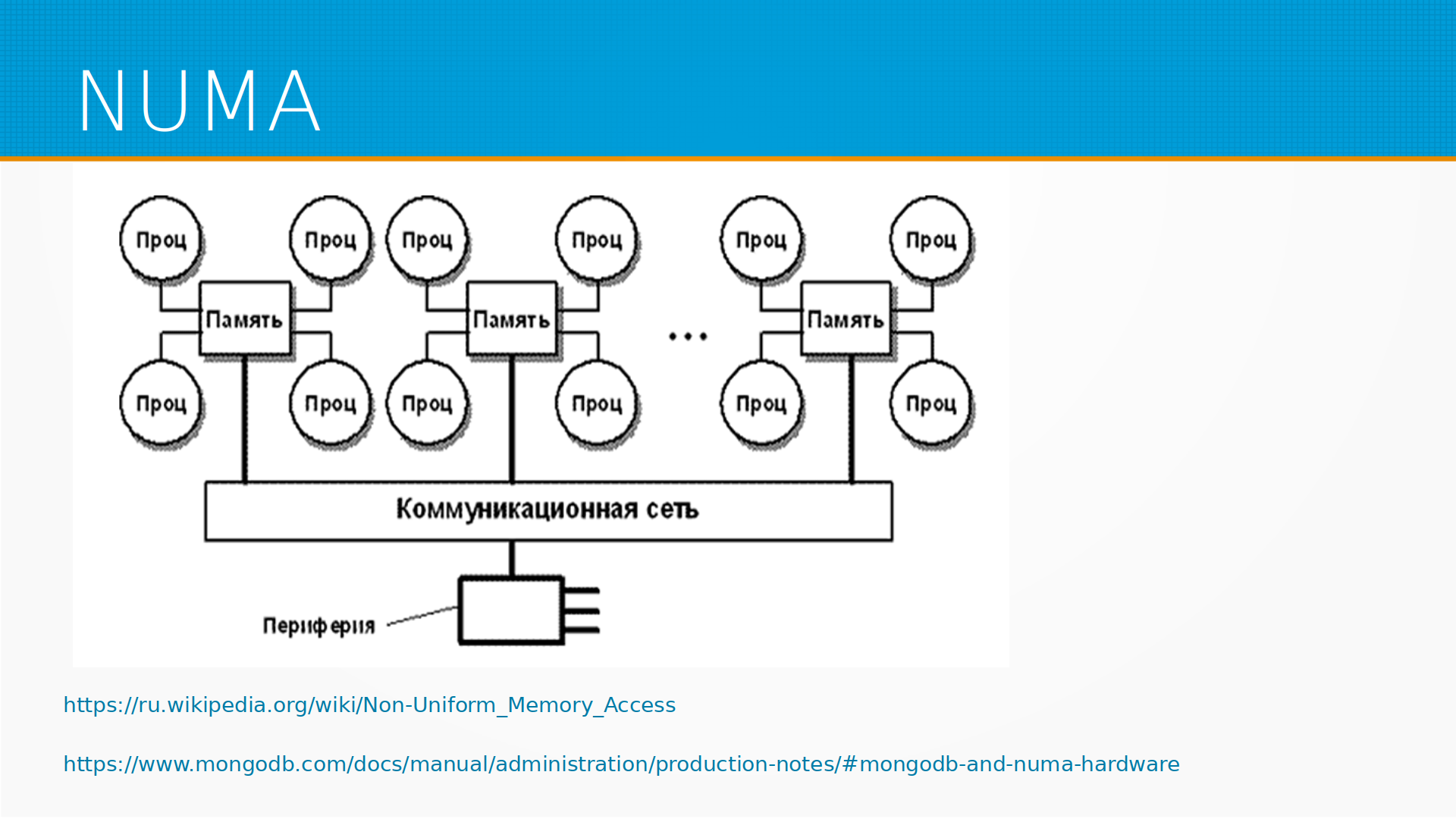 Есть другая проблема. Иногда программное обеспечение, которое не рассчитано на работу в NUMA-платформах, где процессоры собраны в группы со своими кусками памяти, может сталкиваться с race condition, когда процессоры блокируют доступ к памяти друг другу. И, допустим, та же самая MongoDB рекомендует отрубать возможности NUMA. Обычно в выводе информации о процессоре можно как раз увидеть, есть там NUMA или нет. Во всех многоядерных системах она есть. Например у MySQL есть свои особенности с NUMA и еще тут про swap и NUMA.