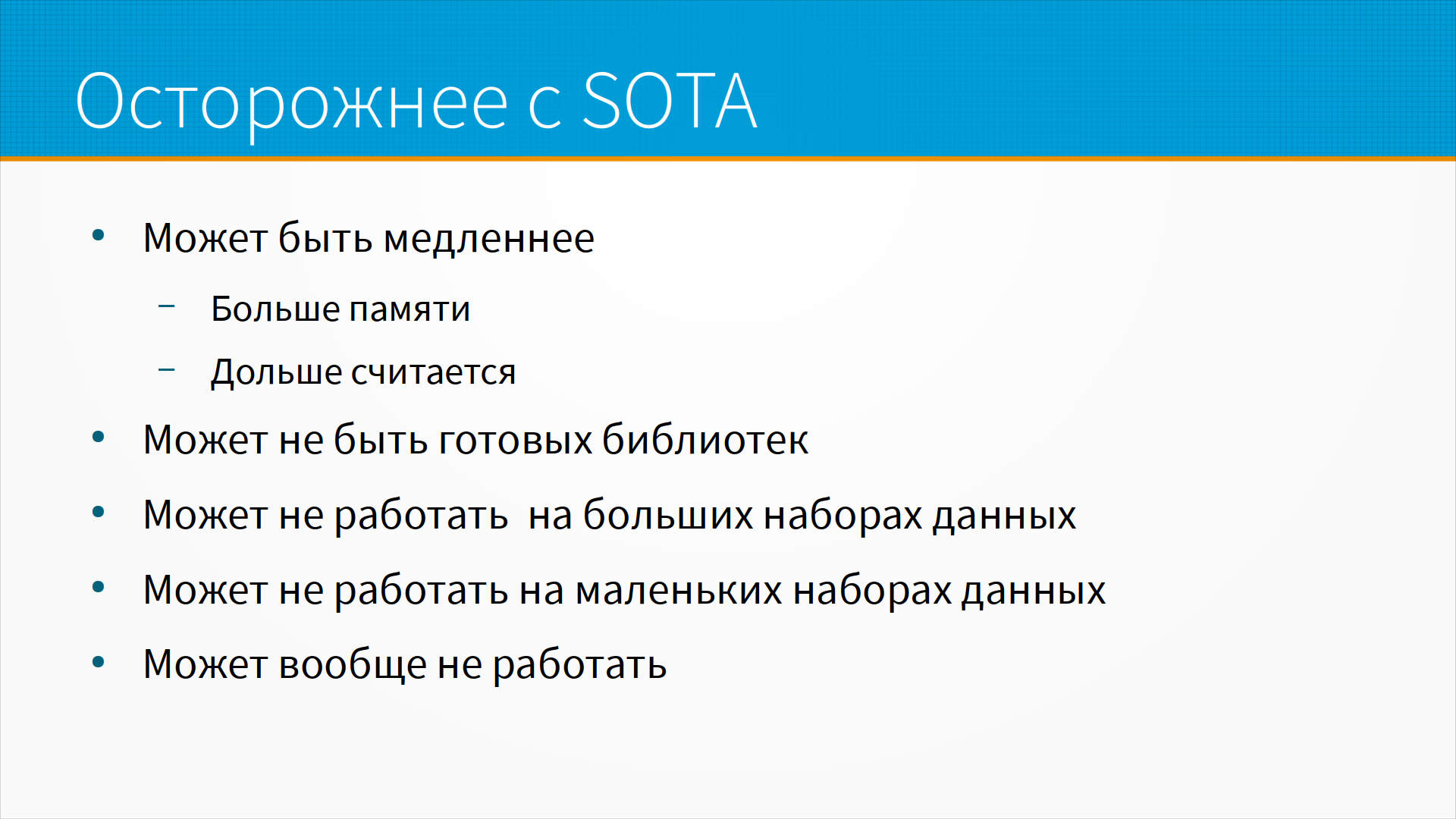 современными state-of-the-art решениями? Очень часто это решение никто не пробовал в