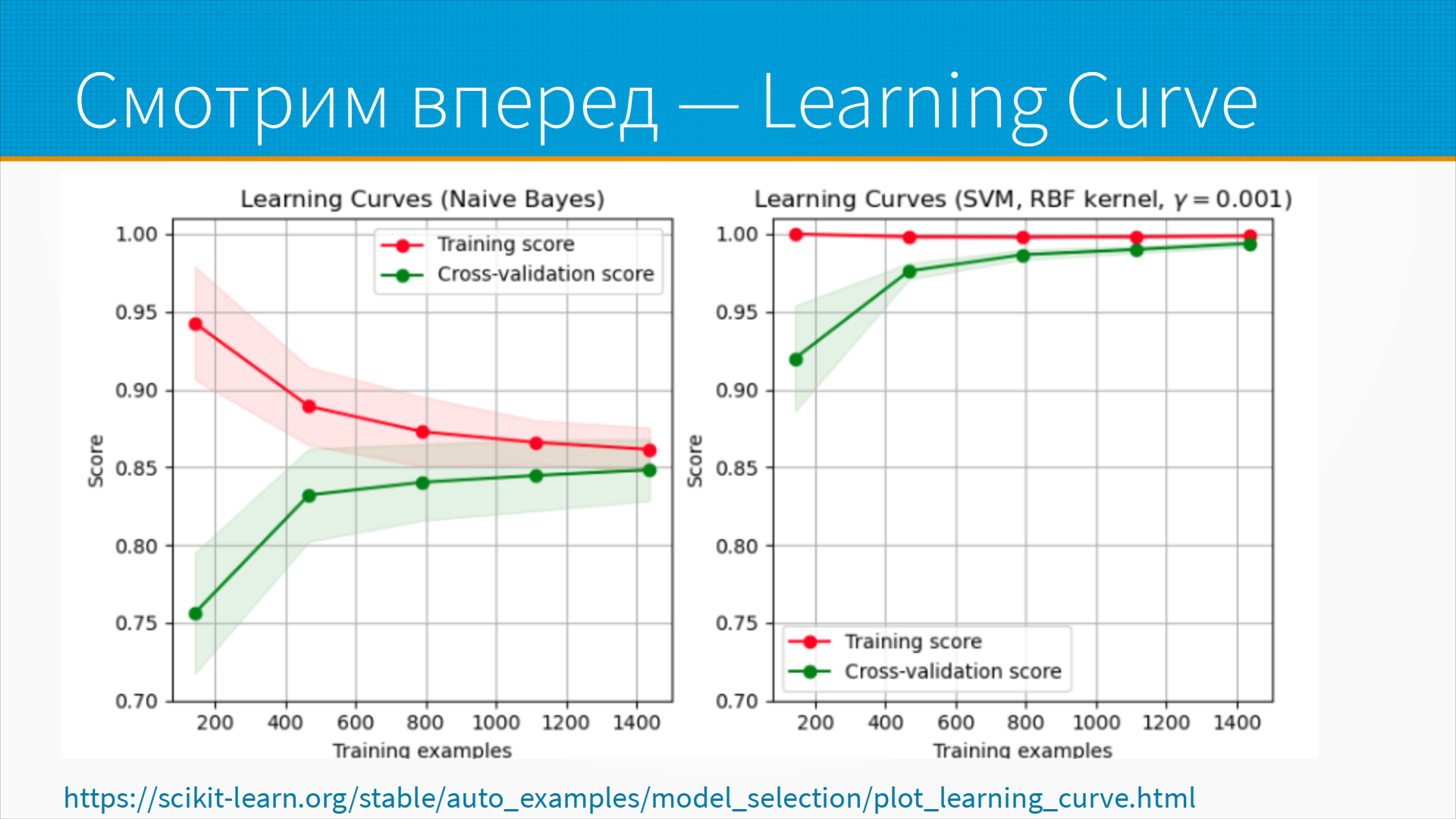 можем оценить так называемый learning curve, кривую обучения. Обучить нашу модель на