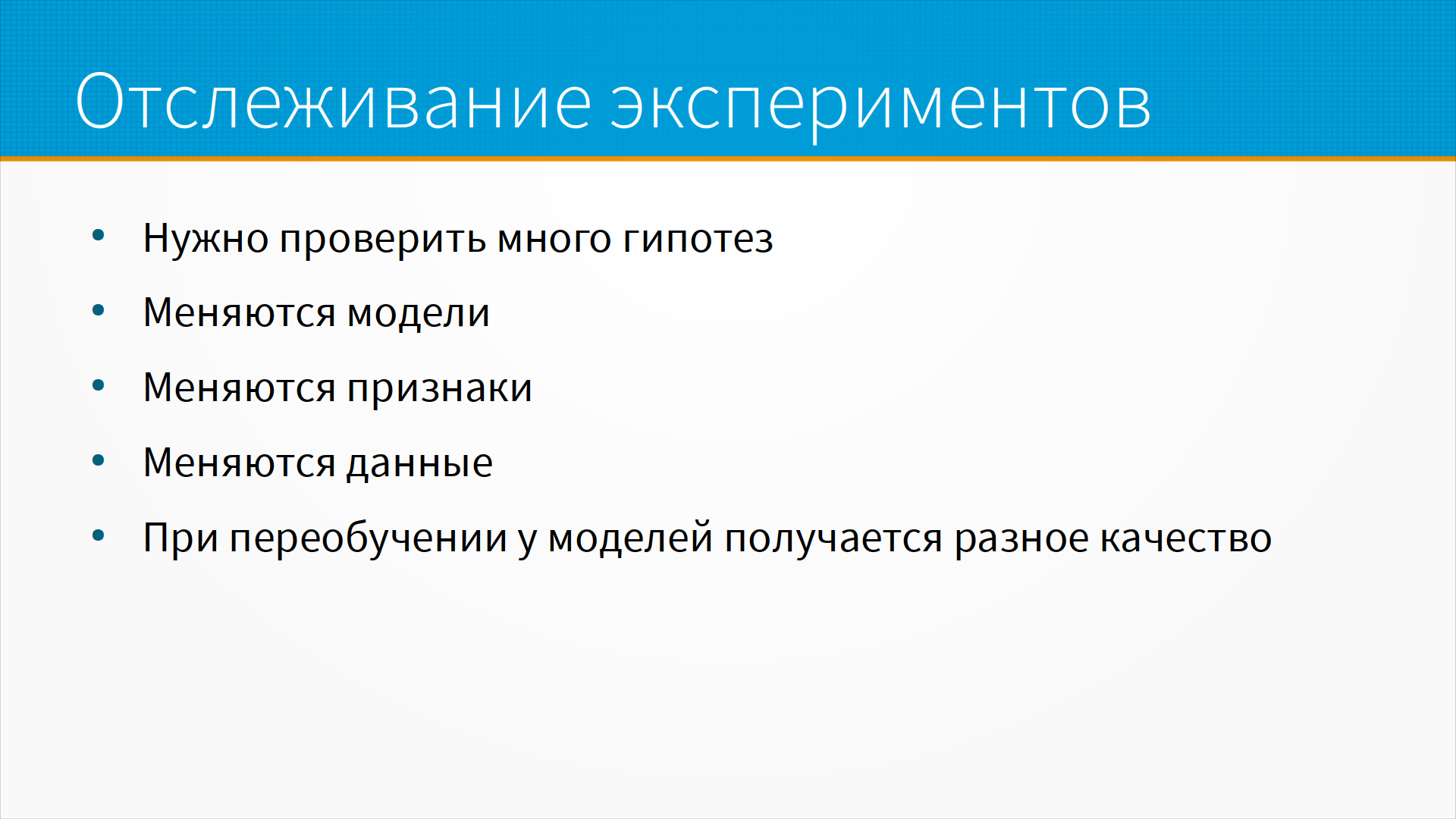 У нас будут меняться модели, меняться признаки, сами по себе данные будут