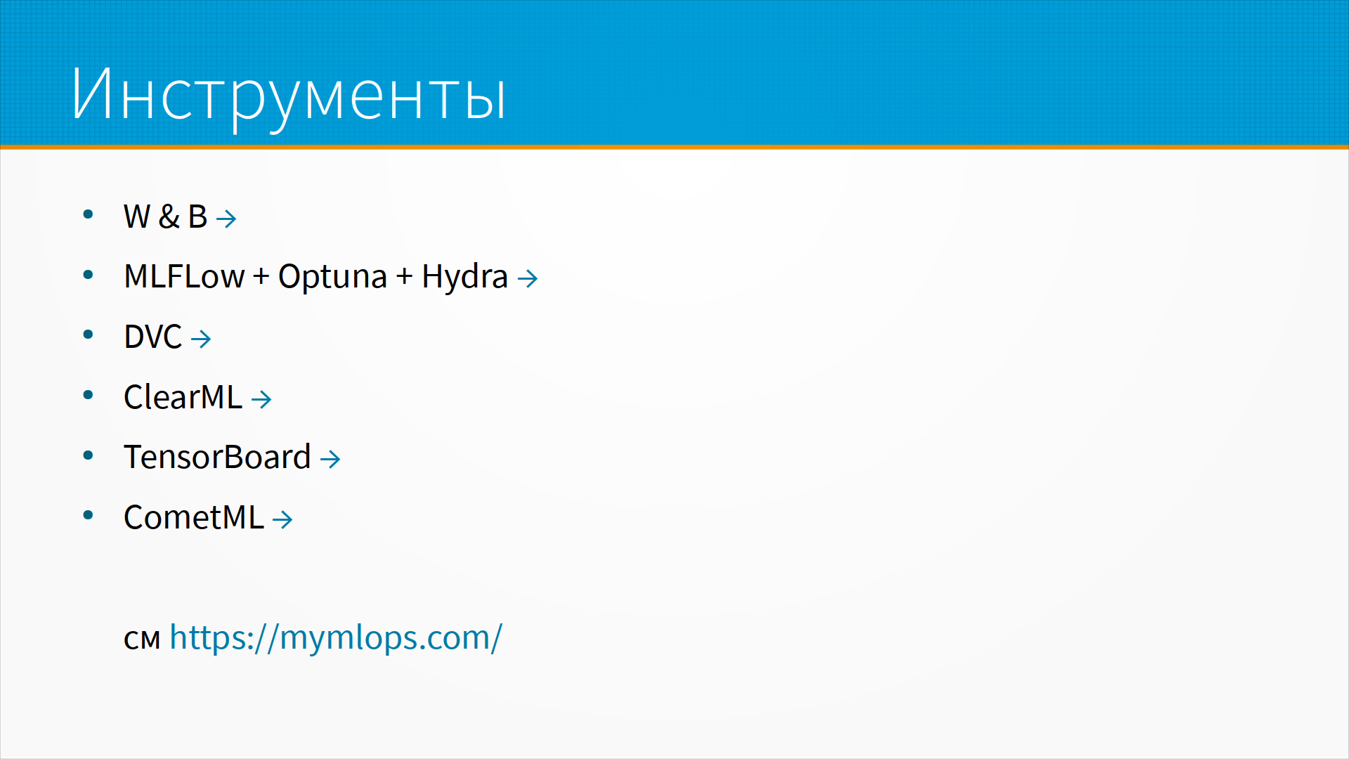 Инструменты для отслеживания версионирования моделей есть в DVC. DVC тем хорош, что он сохраняет слепки данных вместе с вашим пайплайном обучением модели. Это иногда очень хорошо, особенно когда данные маленькие. Вы их поучили и над ними экспериментируете. Когда данные идут к вам потоком и когда данные не помещаются к вам на компьютер, DVC использовать сложнее. Но и там можно, потому что, как правило, мы выполняем какую-то предобработку, и вот результат этой предобработки мы можем сохранять в системе контроля версии.