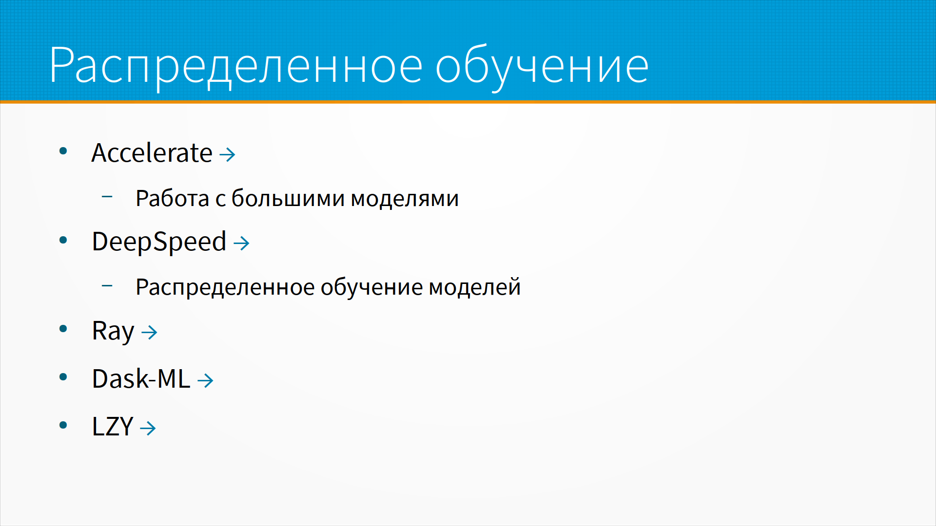 и DeepSpeed. Есть библиотеки, позволяющие распараллелить вычисления, такие