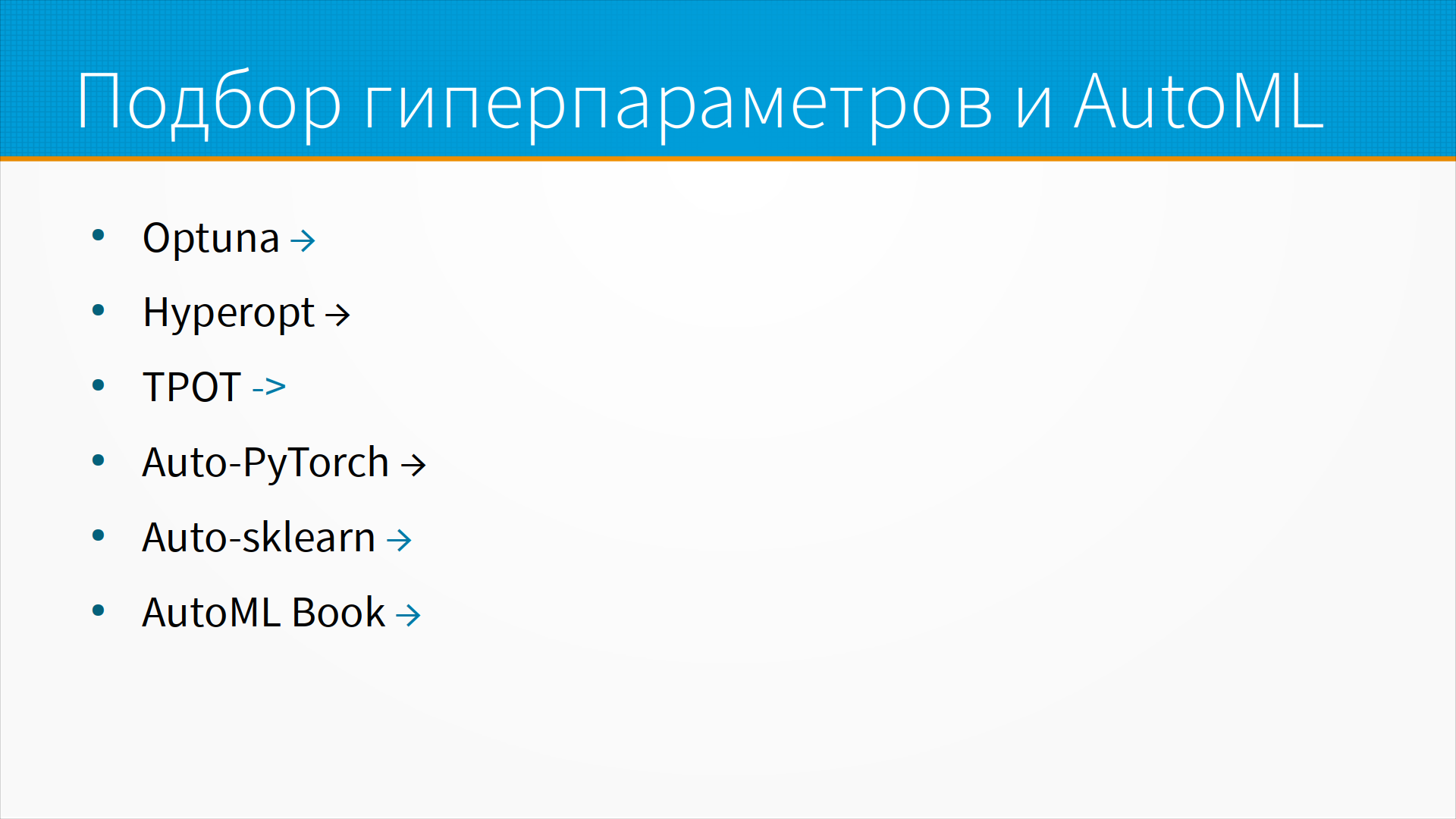 алгоритмов. Обычно подбор гиперпараметров не относят к AutoML, но я тут