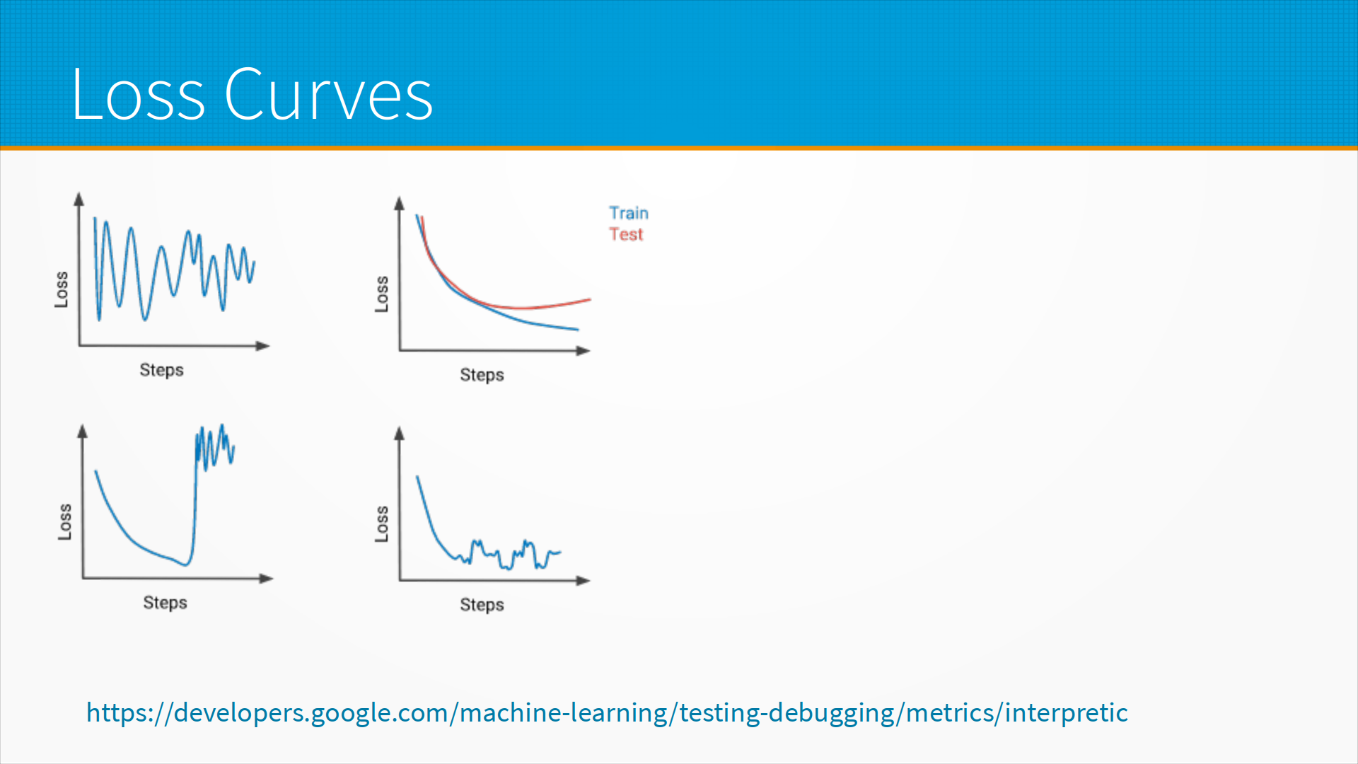 И последний вариант - в правом нижнем углу, когда модель вроде бы как у нас училась, а затем начала странно прыгать в качестве. Обычно это говорит о том, что у вас плохо отсортированные примеры в батчах. Например, если вы учите модель различать кошечек от собачек, а у вас один батч состоит целиком из кошечек, другой батч целиком из собачек - тут надо следить за сэмплированием.