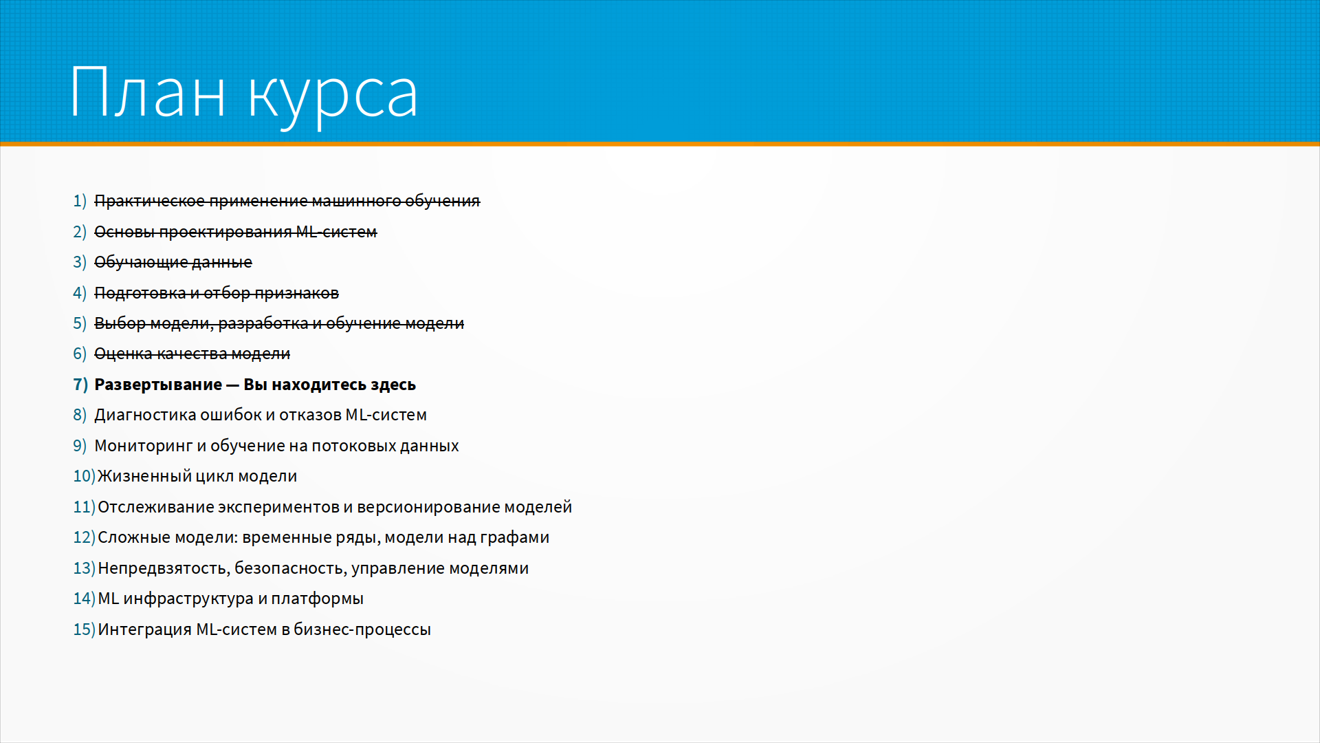 Добрый вечер, у нас сегодня седьмая лекция по дизайну систем машинного обучения - про шаблоны развертывания системы.