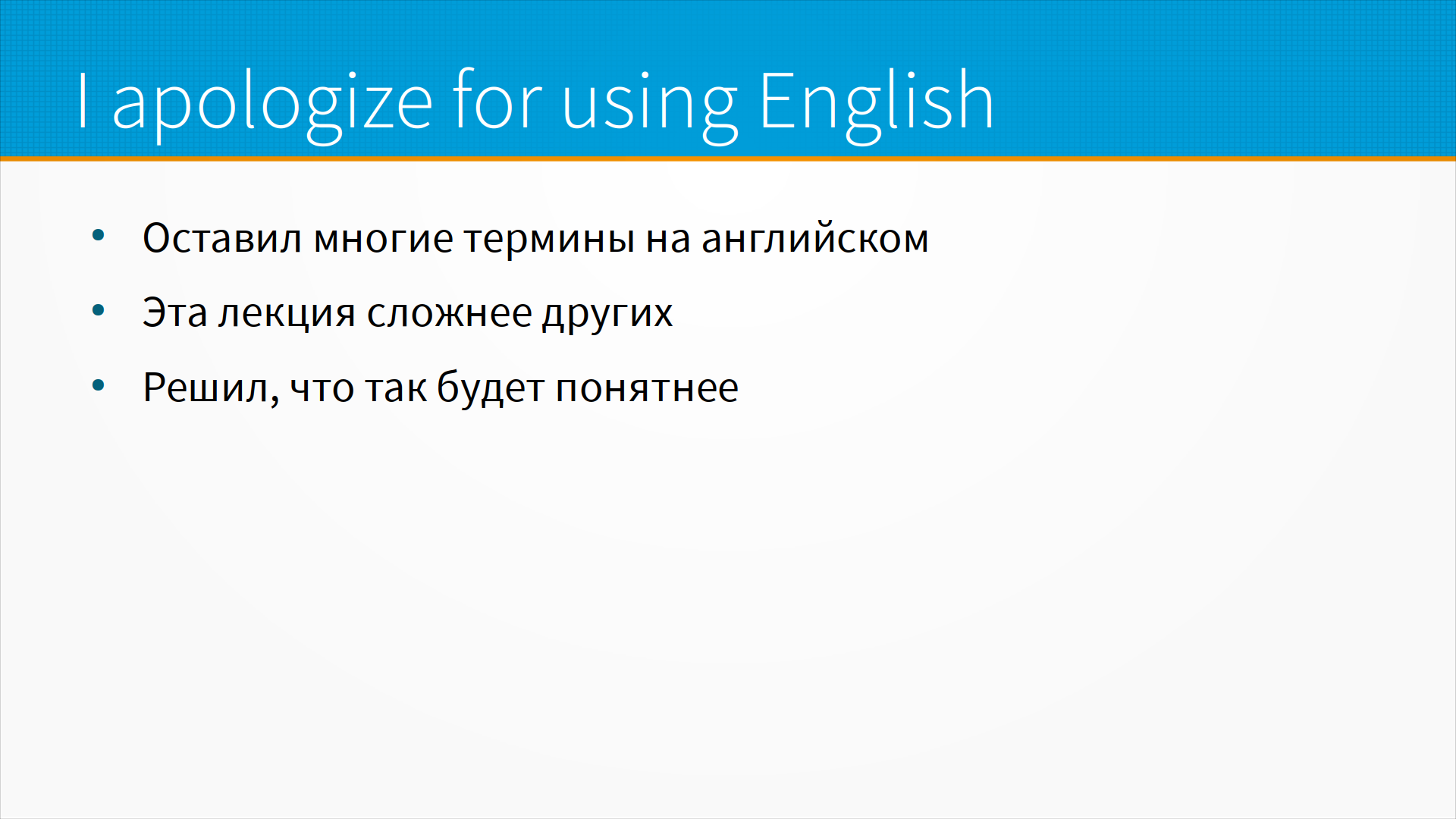 В этой лекции я оставил много терминов на английском языке, просто потому, что большинство документации и литературы на эту тему - на английском, и очень сложно сопоставлять русские переводы и английские.